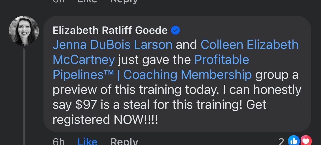 Through live coaching during the Mini Course, she'll personally guide you to elevate your business, sharing invaluable insights for lasting growth.
